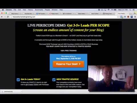 For more periscope information register for Free Training How to Get 3-5 leads from each Periscope video http://freeweeklymarketingtraining.com/?t=periscopeinfo